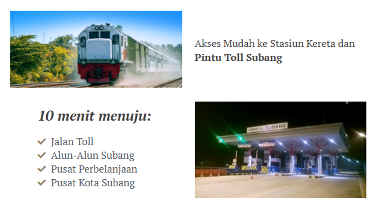 Akses Mudah ke Stasiun Kereta dan Pintu Toll Subang